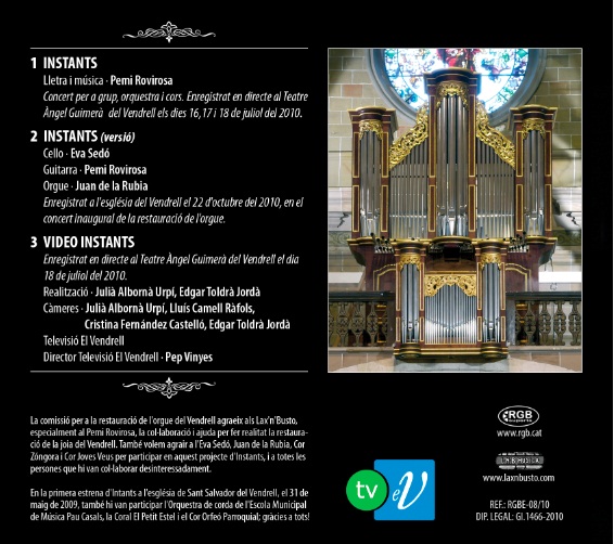 Aquest divendres, 24 de desembre, podreu comprar amb el diari 3 de 8 el CD Instants. Aquest CD inclou 3 tracks la cançó Instants composada per Pemi Rovirosa, en motiu de la restauració de l’orgue.