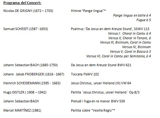 El proper divendres, 9 de març a 2/4 de 9 del vespre, concert d’orgue a l’església parroquial del Vendrell a càrrec de l’organista Marcel Martínez i el Santicus Cor de noies