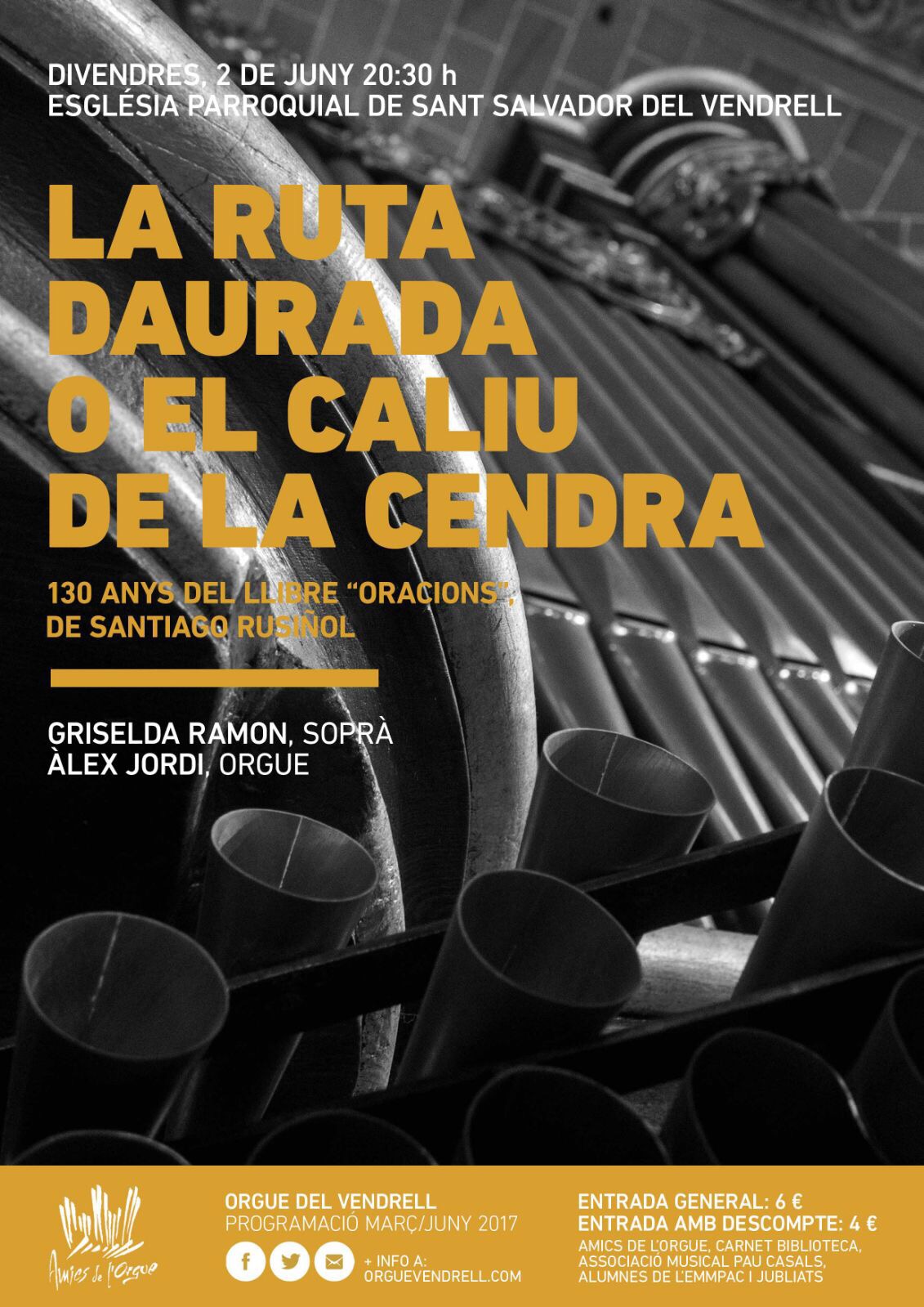Concert el proper divendres 2 de juny a les 20:30 hores a l’església parroquial del Vendrell a càrrec del duet “La veu humana” amb Griselda Ramon, soprà i Àlex Jordi, orgue.