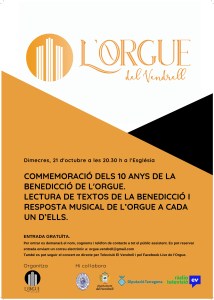 Aquest dimecres, 21 d’octubre, a les 20.30 h a l’església commemorem els 10 anys de la restauració de la joia del Vendrell; l’orgue.