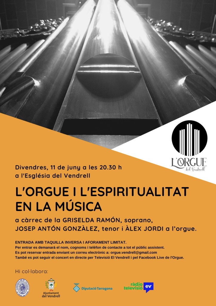 Orgue i Espiritualitat són dues paraules que van agafades de la mà. L’orgue és, des de fa molts segles, l’instrument que omple totes les celebracions litúrgiques per excel·lència. És un element més en moltes esglésies i catedrals de tot el nostre territori. Els seus sons i varietat de registres ens transporten a sentiments i sensacions profundes, sempre amb l’aire com a vehicle de transmissió.