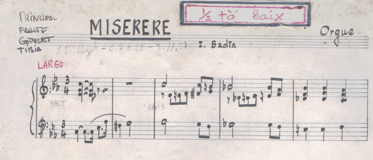 El dilluns, 25 de març a les 11 del matí a la Sala Sant Salvador de la rectoria (carrer de Mar, 6 del Vendrell), tindrem el goig de presentar l’edició del llibret del Miserere atribuït a Josep Badia i Planas (1830 – 1904).